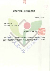 令和8年1月8日付でユースエール認定企業(若者の採用や育成に積極的で、若者の雇用状況が優良の中小企業を、若年層雇用促進法に基づいて厚生労働大臣が認定する制度)として、更新認定の通知書を受領いたしました。